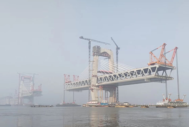 截止目前,主橋鋼梁已完成43節(jié)(共88個節(jié)間),斜拉索已安裝128根(共304根)。